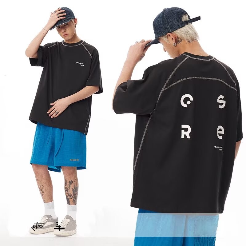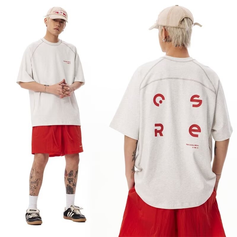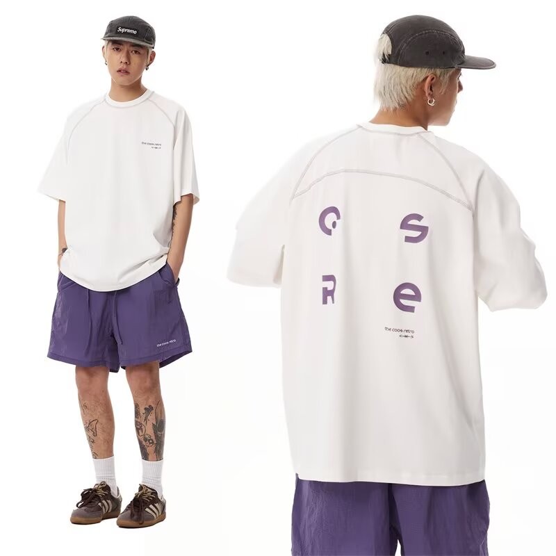 PannoFluxus เสื้อยืดผู้ชายแขนสั้นแฟชั่นย้อนยุคอเมริกันสไตล์สตรีทคุณภาพสูงสไตล์เป็นกลาง