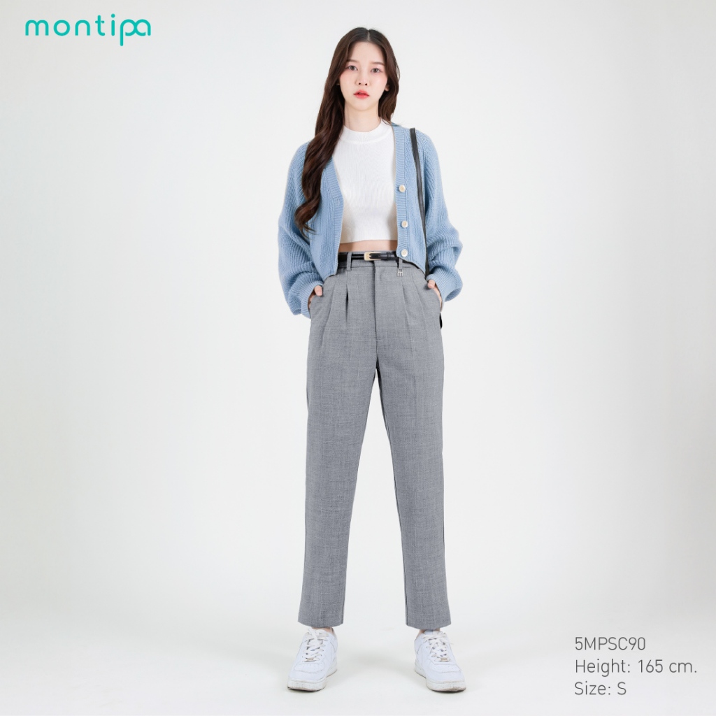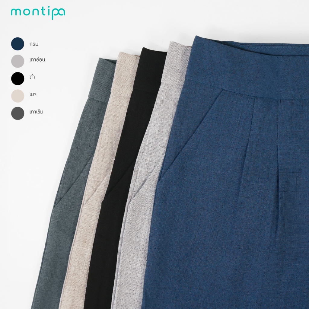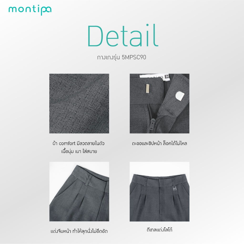 Montipa กางเกงทรงสอบ ซิปหน้า ดีเทล symbolic logo ผ้า Comfort 56PSC90