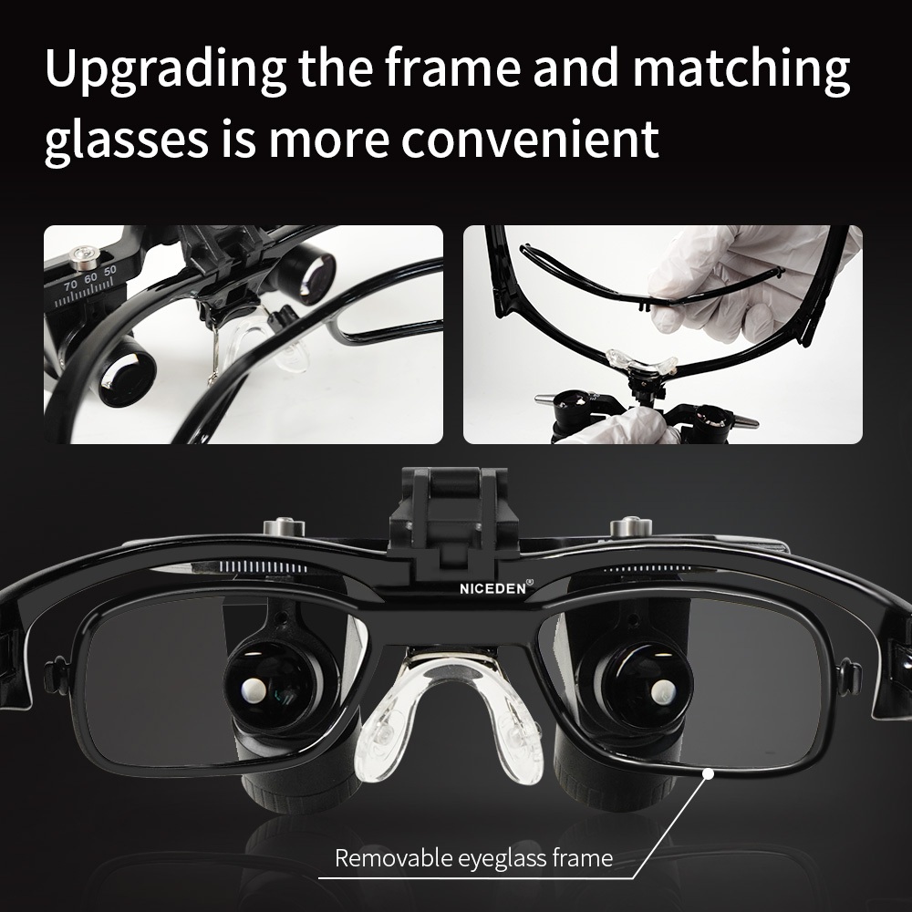 NICEDEN อัพเกรด 5.0X Ergo Loupes พร้อมเฟรมเหมาะสําหรับสายตาสายตาสั้น