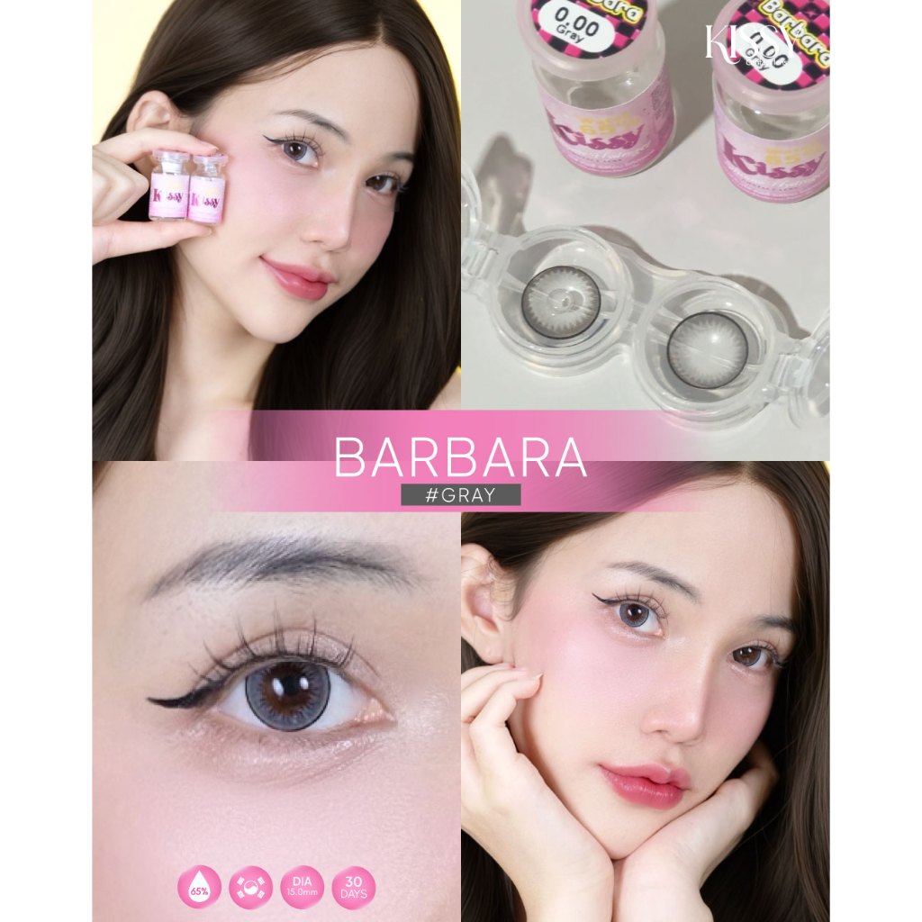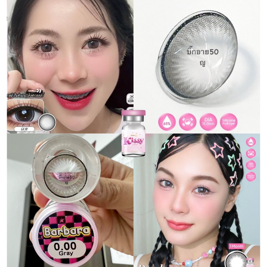 แฟชั่น Barbara เทา ตาล ดำ บิ๊กอาย Kissy คอนแทคเลนส์ ายเดือน "สินค้าถ่ายจากเลนส์จริง"