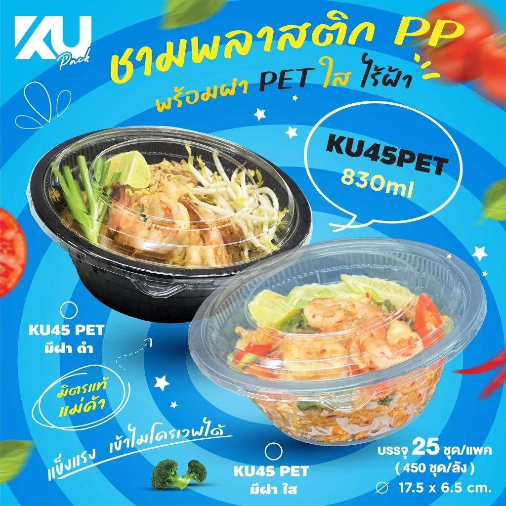 KU/KU45/พร้อมฝาPET/ฝาใสไม่ขึ้นฝ้าขึ้นไอ/830ml/ใส,ดำ/ชามใส่ข้าวและก๊วยเตี๊ยว