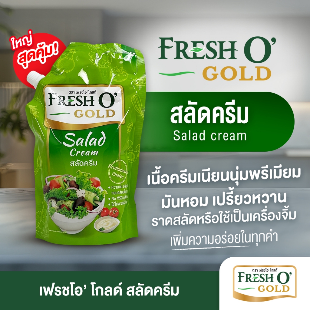 FRESH O' Gold สลัดครีม Salad Cream พรีเมี่ยม มาตรฐาน GHPs & HACCP รสกลมกล่อม หอมมันละมุน 800g
