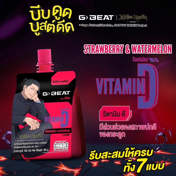 G-BEAT x Jujutsu Kaisen STRAWBERRY WATERMELON JELLY 180g. PACK12 แถมฟรี !! กระเป๋าผ้าลาย Gojo