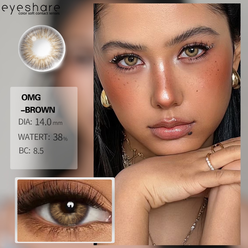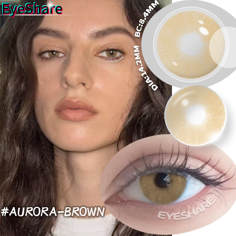 Eyeshare 1 คู่คอนแทคเลนส์สี มีค่าสายตา 0.00~-6.00 AURORA สีน้ำตาล ปริมาณน้ำ 38% Contact Lens 14.2mm