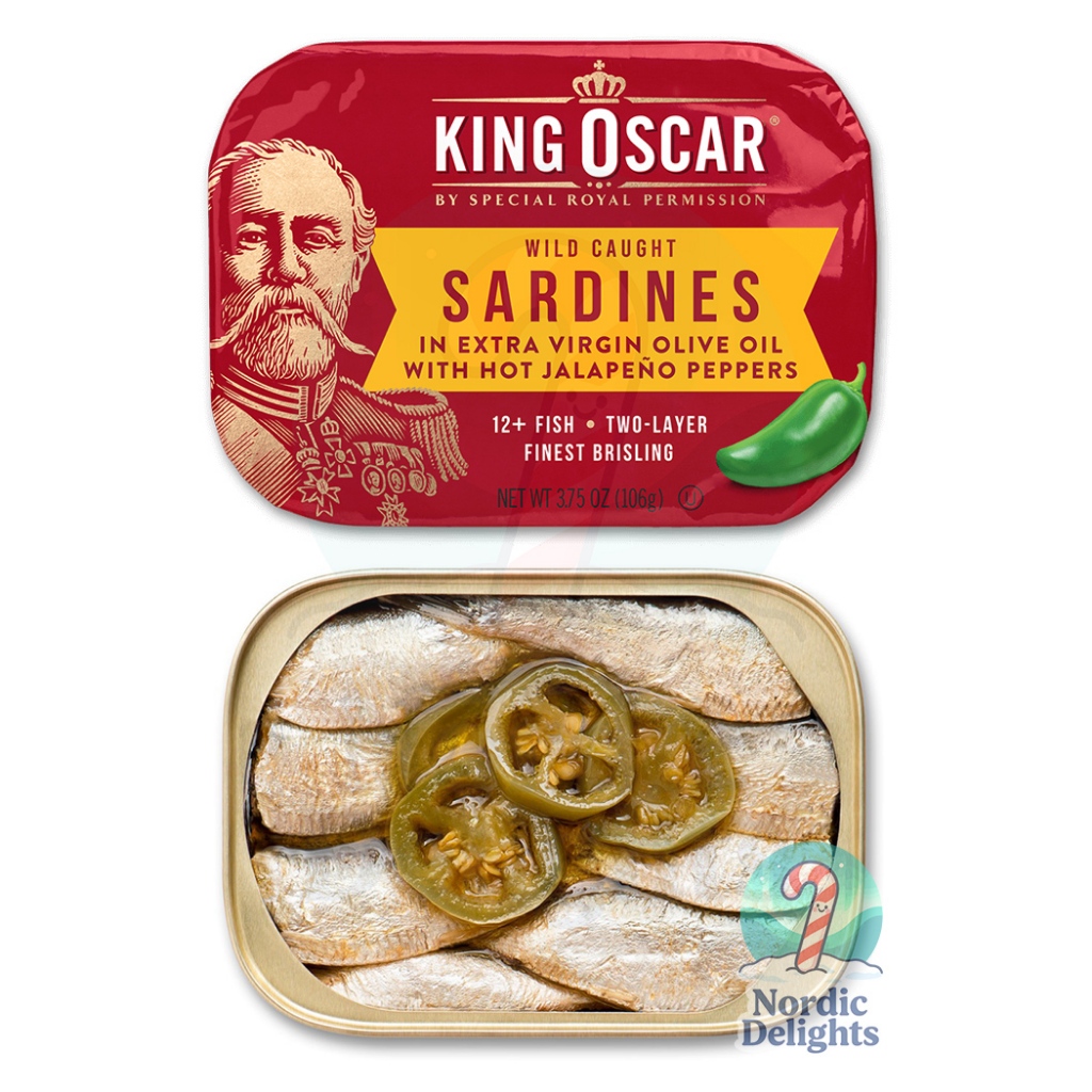 King Oscar Sardines Mackerel Olive Oil Jalapeno Lemon Med ปลาซาร์ดีนแมคเคอเรลคิงออสการ์นอร์เวย์น้ำมันมะกอก