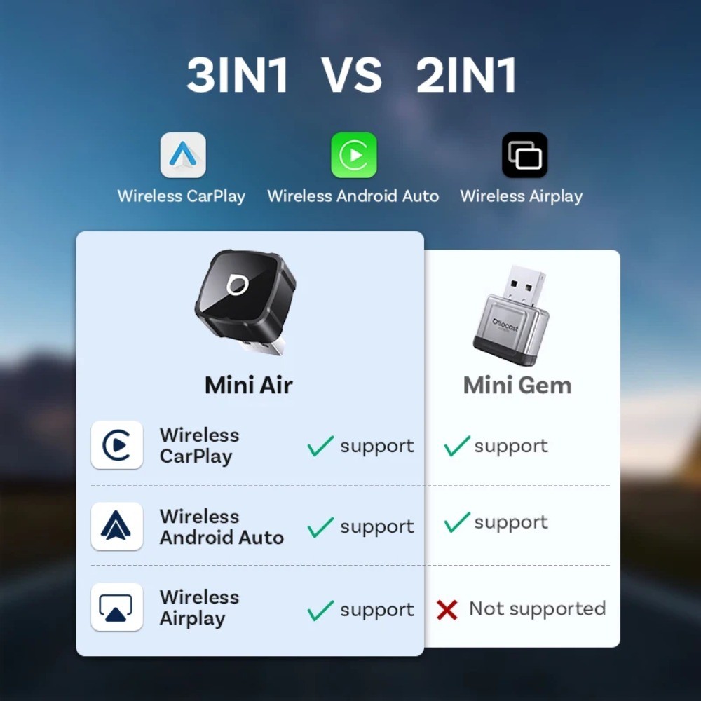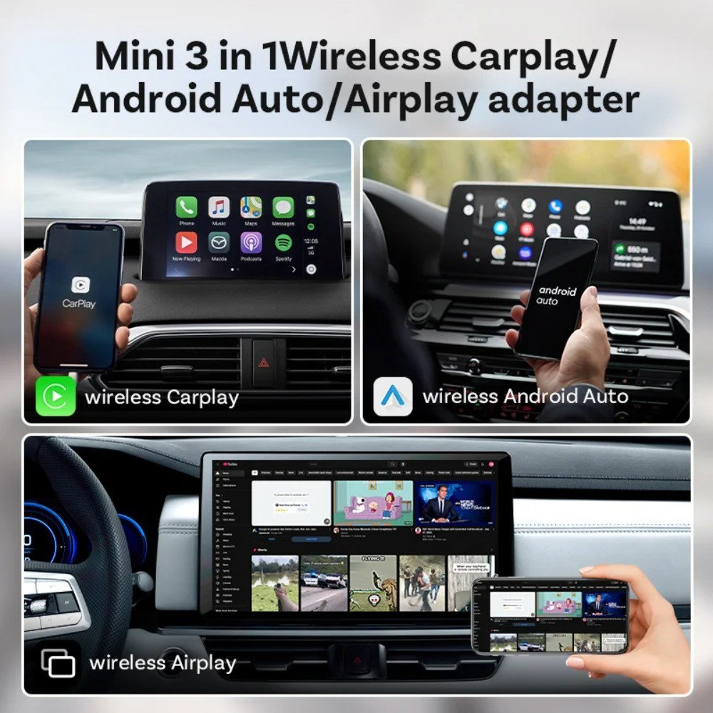 Ottocast Mini Air 3 in 1 Wireless CarPlay Android อะแดปเตอร์อัตโนมัติและหน้าจอ Airplay Mirroring USB Plug & Play Dongle