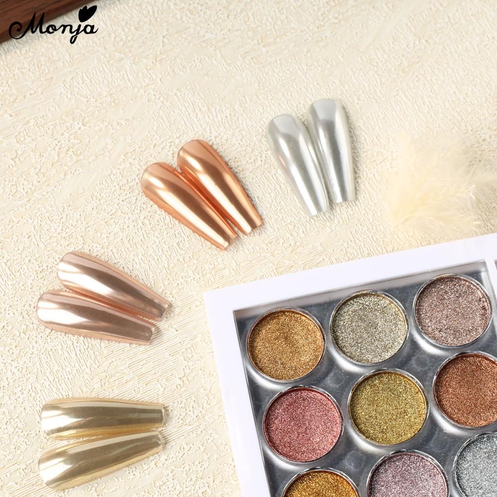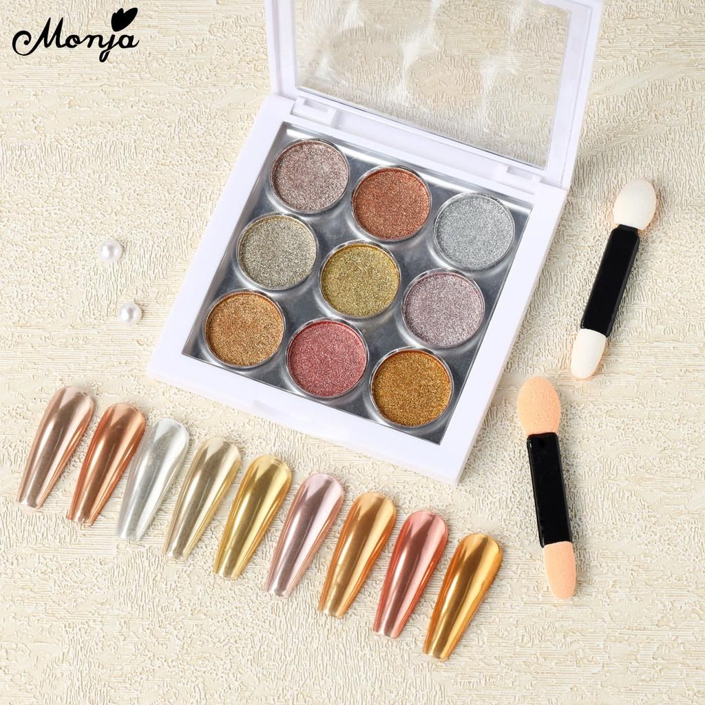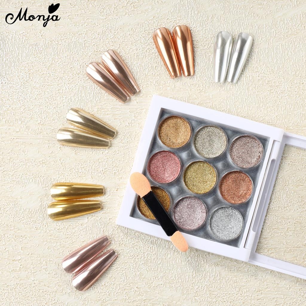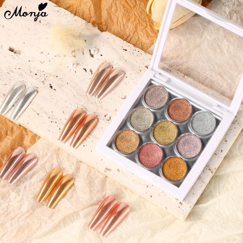 Monja 9สี/กล่องเล็บกระจกผง สะท้อนแสง กระจกผงกระจกตกแต่งเล็บ ผงกระจกออโรร่า ติดทนนาน สําหรับตกแต่งเล็