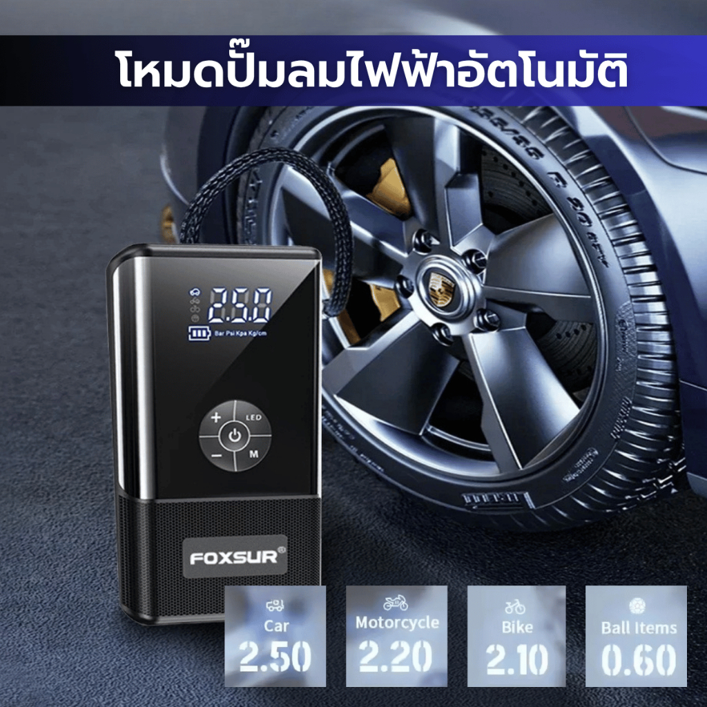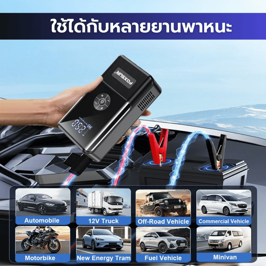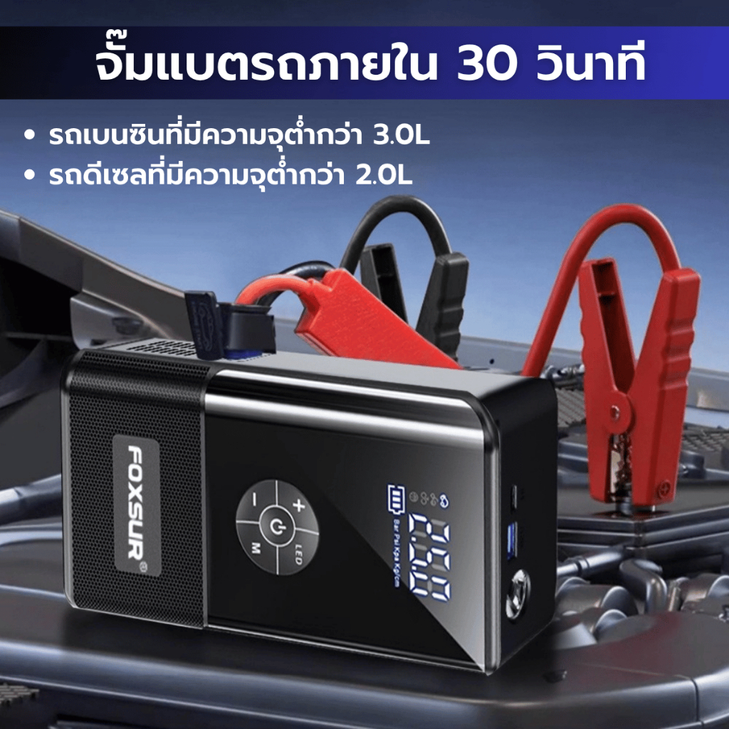 (จั๊มสตาร์ทมินิมอล) FOXSUR จั๊มสตาร์ทพกพา พร้อมปั๊มลมในตัว จั๊มแบต เติมลม รถยนต์ มอไซค์ ผ่าน มอก.