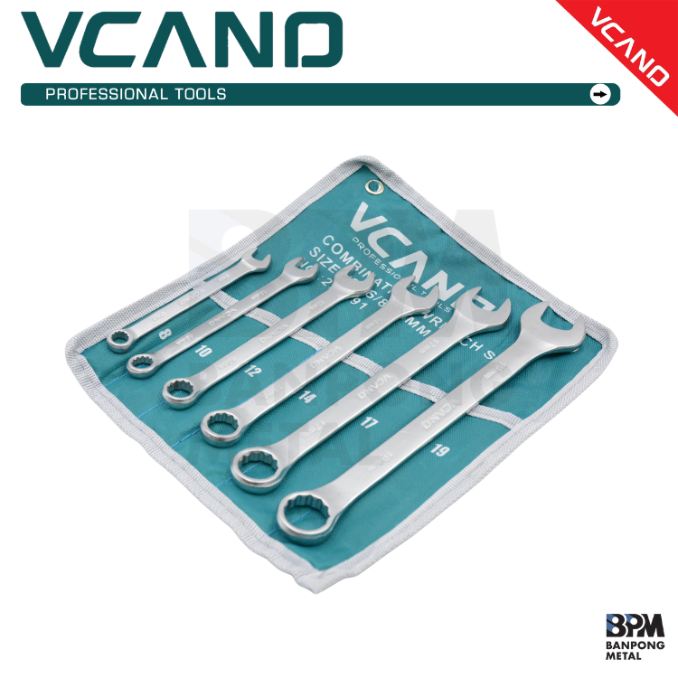 VCANO ชุดประแจแหวนข้างปากตาย 8-19 mm. 6 ชิ้น ในกระเป๋าผ้า รุ่น 298291