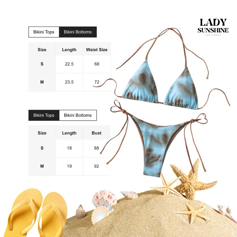 พร้อมส่ง❤️🔥บิกินี่ลายมัดย้อมน้ำตาล-ฟ้า เชือกแบบผูก กระชับทุกหุ่น ส่งจากกทม