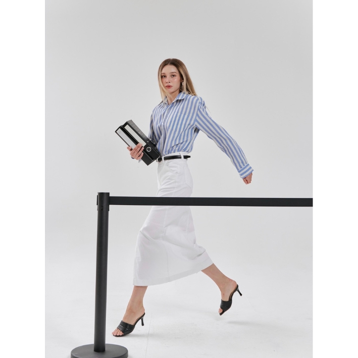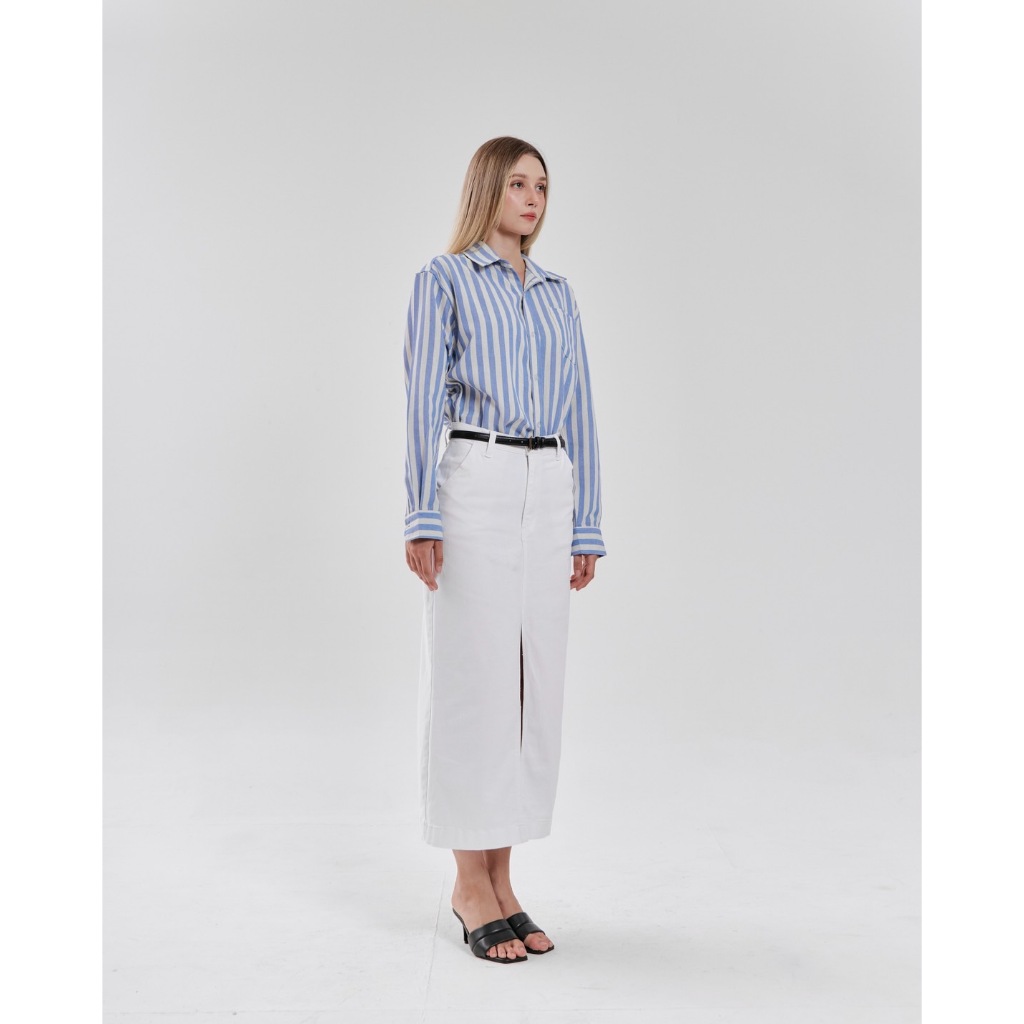 BXB - WHITE DENIM SKIRT กระโปรงยีนส์สีขาวผ่าหน้า ผ้าเนื้อนิ่ม