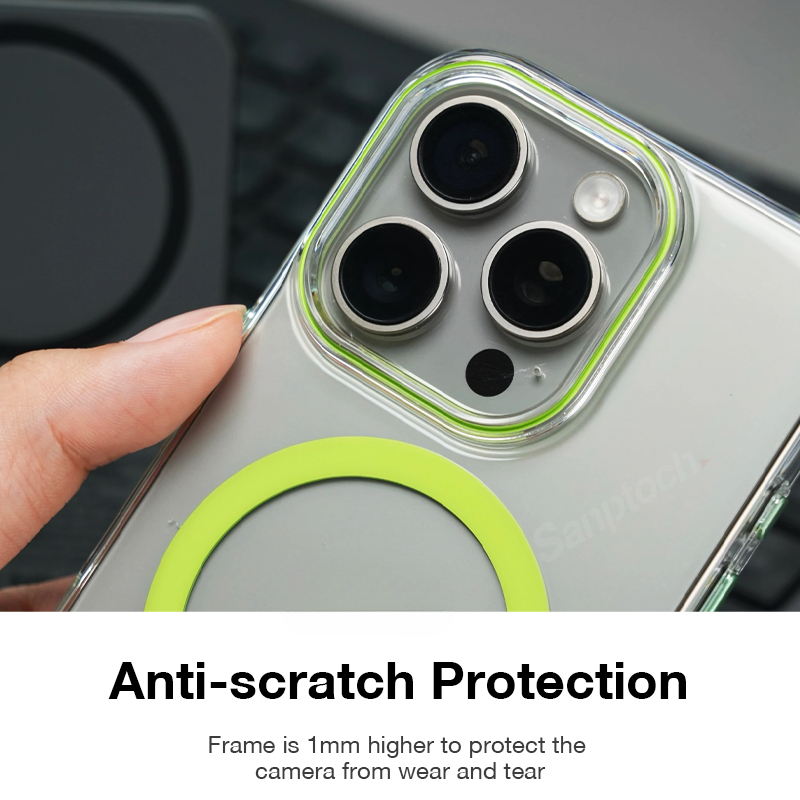 Sanptoch สําหรับแม่เหล็กคริสตัลใส Slim เคสโทรศัพท์สําหรับ iPhone 16 / 15 / 14 / 13 / 12 Pro Max โปร่งใส Non-yellowing Hard Cover สําหรับ iPhone 16 Pro Max PC บางป้องกันปลอก
