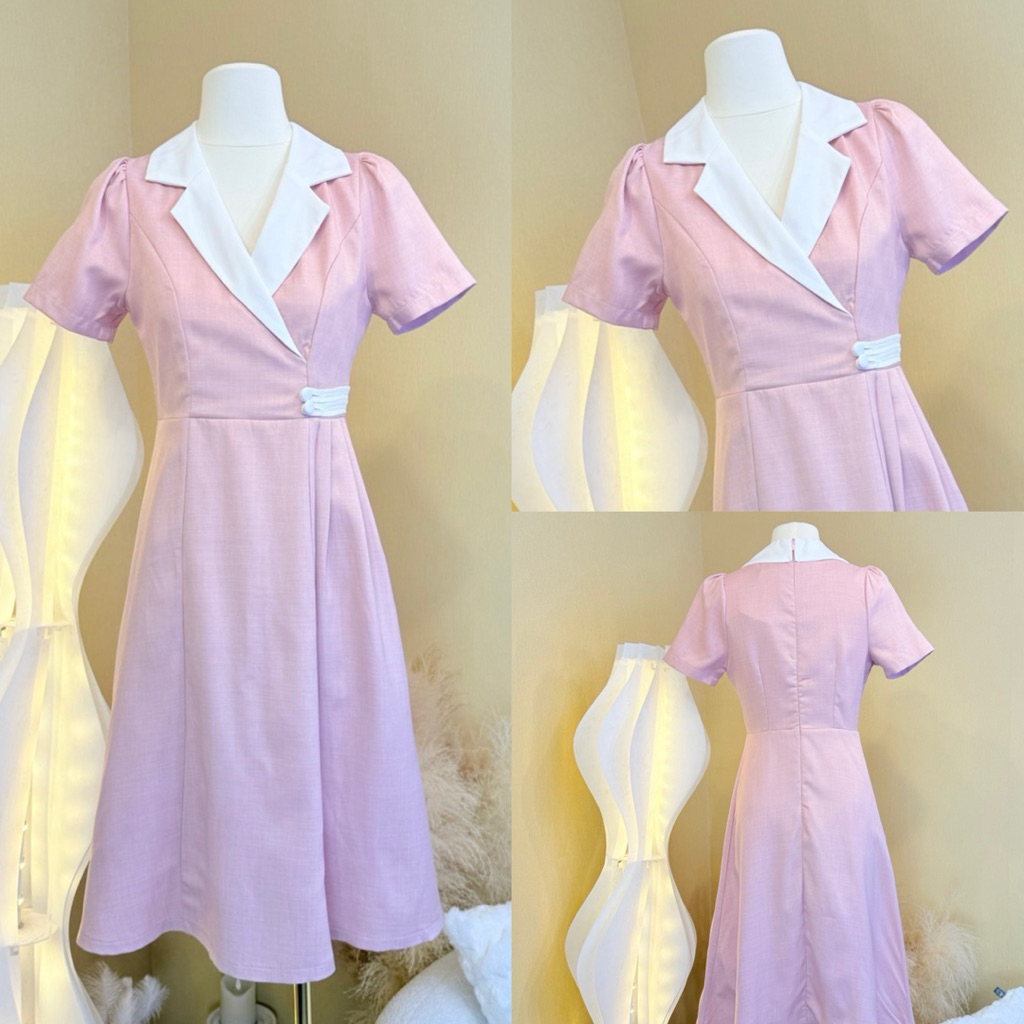 [LISA] A1150 ชุดเดรสกระโปรงยาวคอปกแขนสั้นดีเทลแต่งกระดุมช่วงเอวเรียบหรูดูแพงใส่เที่ยวออกงาน ดินเนอร์