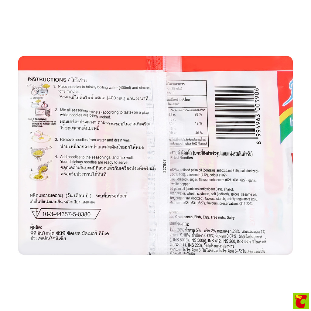 อินโดมี่ บะหมี่กึ่งสำเร็จรูป หมี่ โกเรง 85 ก. แพ็ค 5