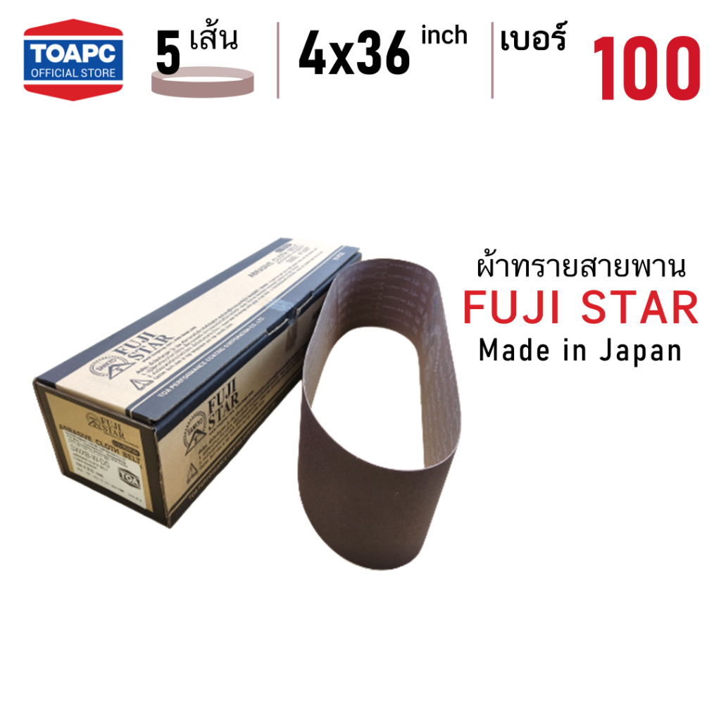 ผ้าทรายสายพาน FUJI STAR รุ่น SWX จำนวน 5 เส้น เบอร์ 40 60 80 100 120 150 180 240 SANDING BELT 4"x36" (100x915 mm)