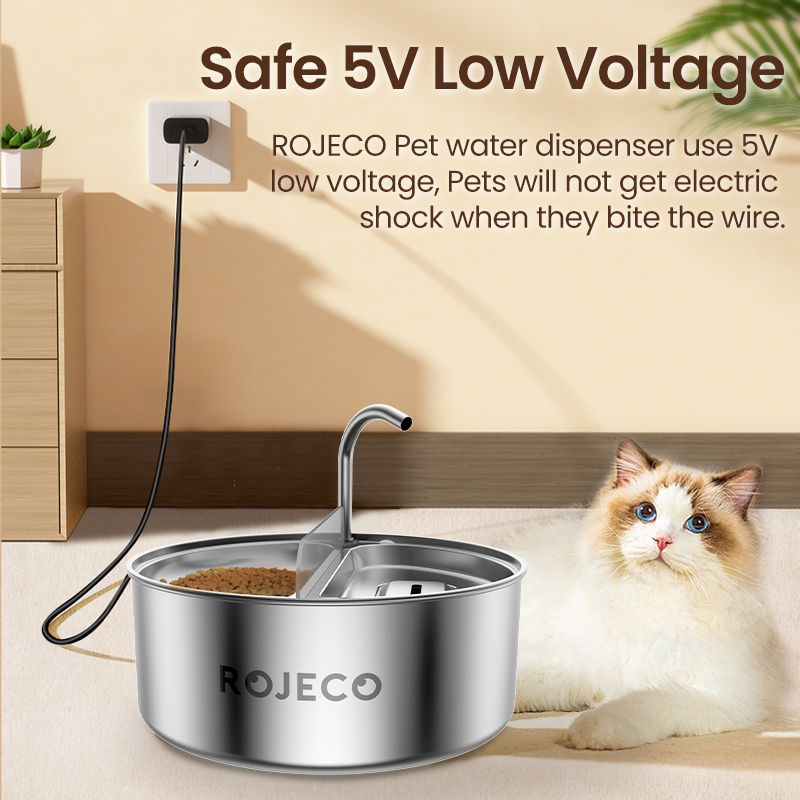 Ready StorkRojeco 3.2L น้ําพุแมวอัตโนมัติและป้อน 2 In 1 สแตนเลสชามคู่เครื่องจ่ายสัตว์เลี้ยง