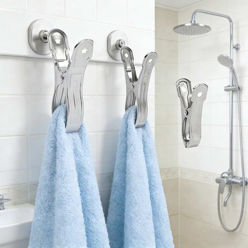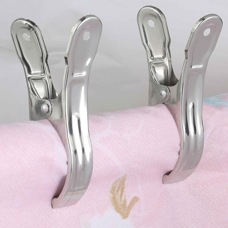 ที่หนีบผ้าสแตนเลสทนทาน / คลิปหนีบผ้าเช็ดตัวชายหาดขนาดใหญ่ กันลม กันลื่น 3/5/10 ชิ้น