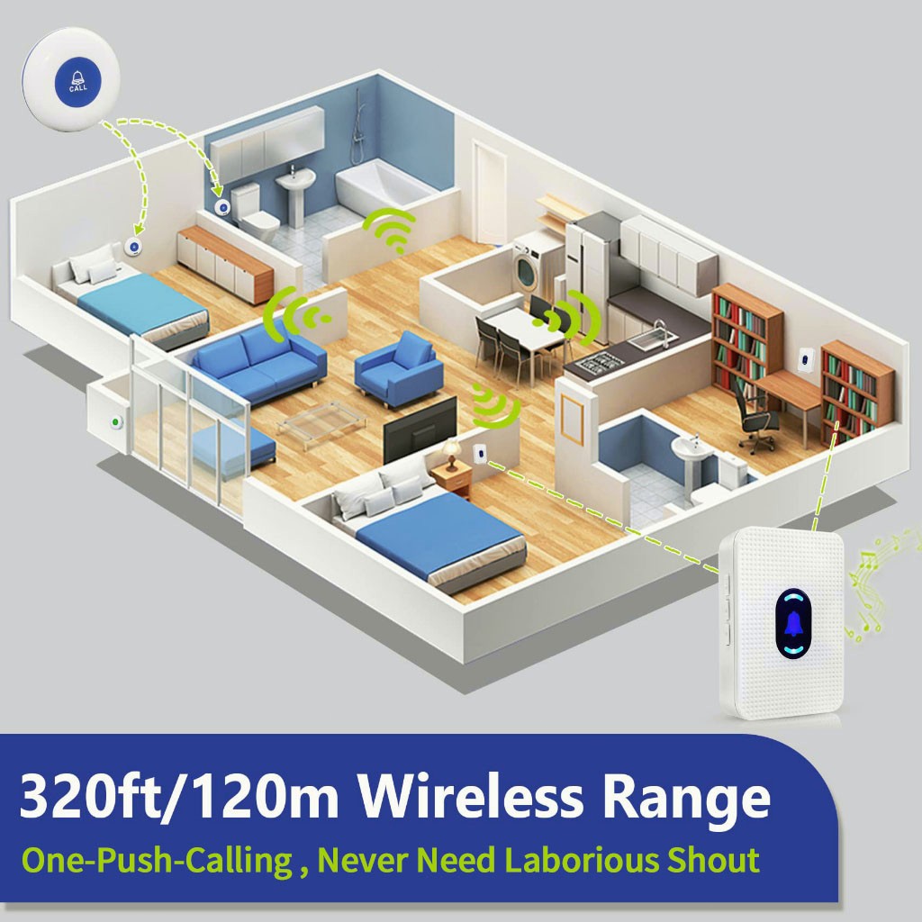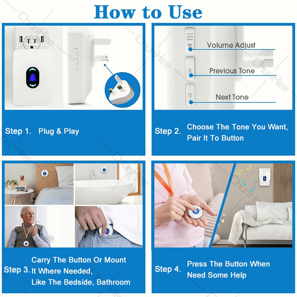 CHUNHEE เตือนฉุกเฉิน Bell Wireless Caregiver Pager โทรปุ่มพยาบาลบ้านสำหรับผู้สูงอายุ / ผู้ป่วย