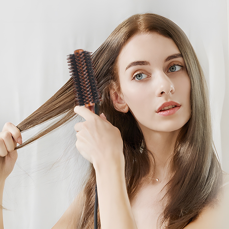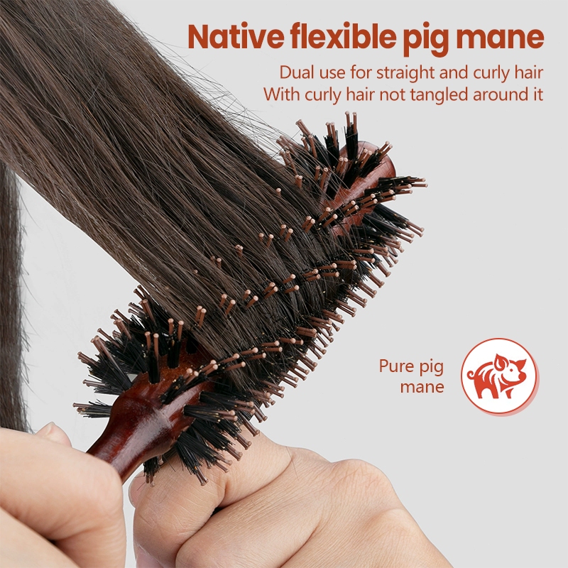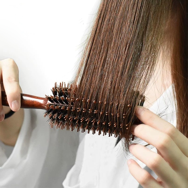 หวีม้วนผมไม้ หวีไดร์เป่าผม หวีขนหมูป่า จัดแต่งทรงผม ทำให้ผมฟู ลอนผม หวียืดผม