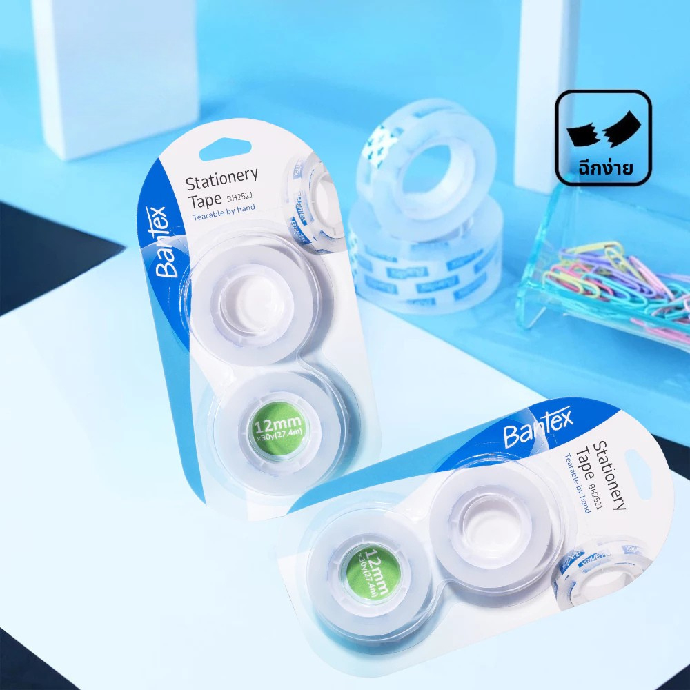 Bantex เทปใส เทปกาว กว้าง 12 มิล 38 ไมครอน แพ็ค 2 ม้วน ติดทน สะดวกใช้งาน ฉีกง่าย Tape Transparent