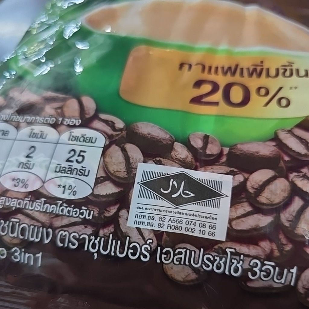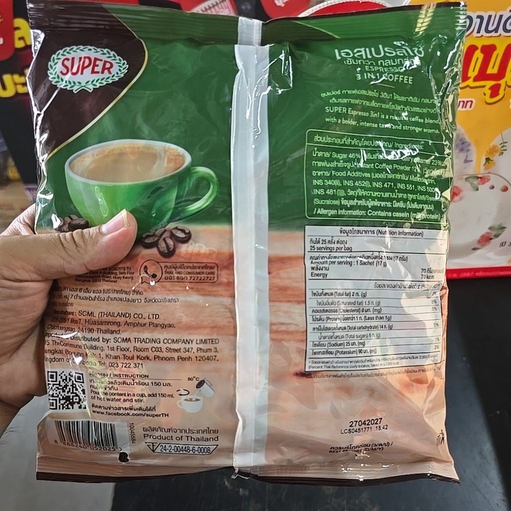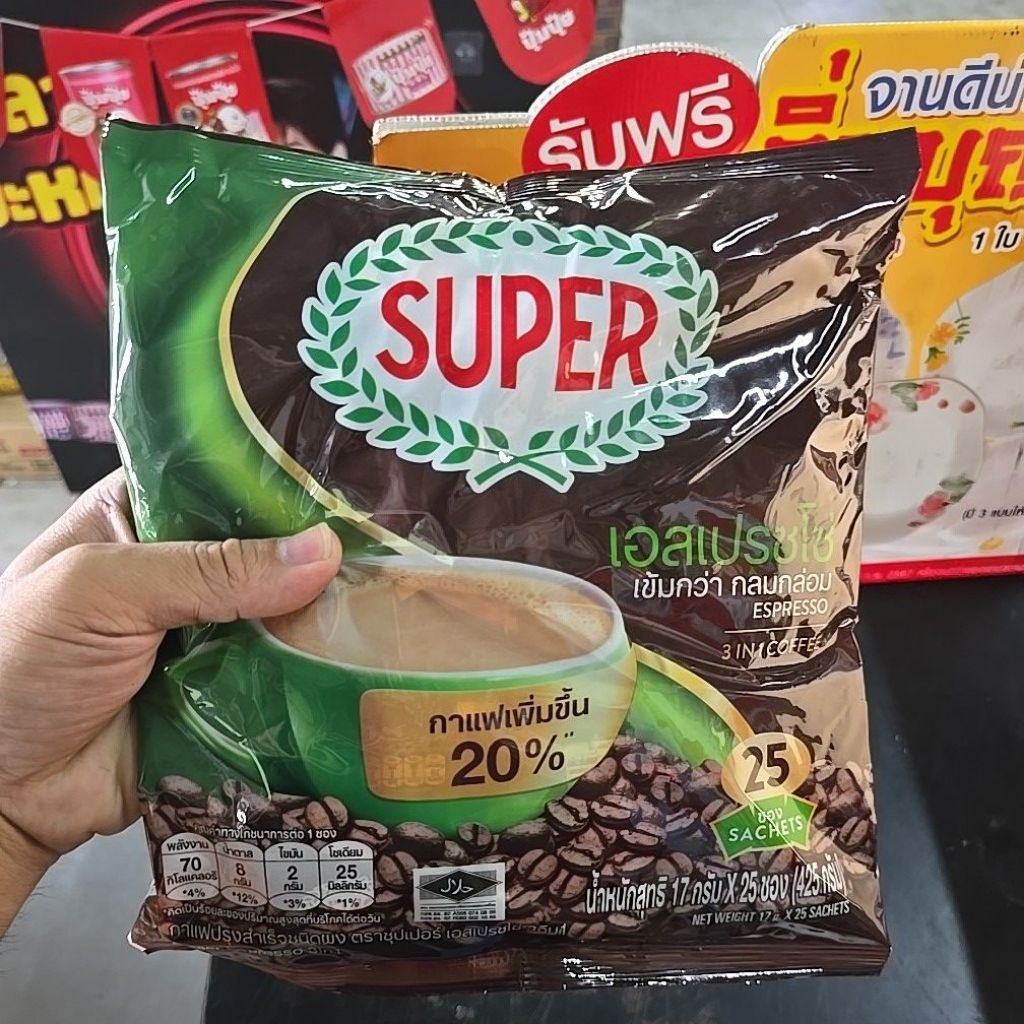 ซุปเปอร์กาแฟ เอสเปรสโซ่ 3in1 สูตรเข้มข้น สีเขียว แพ็ค 25 ซอง