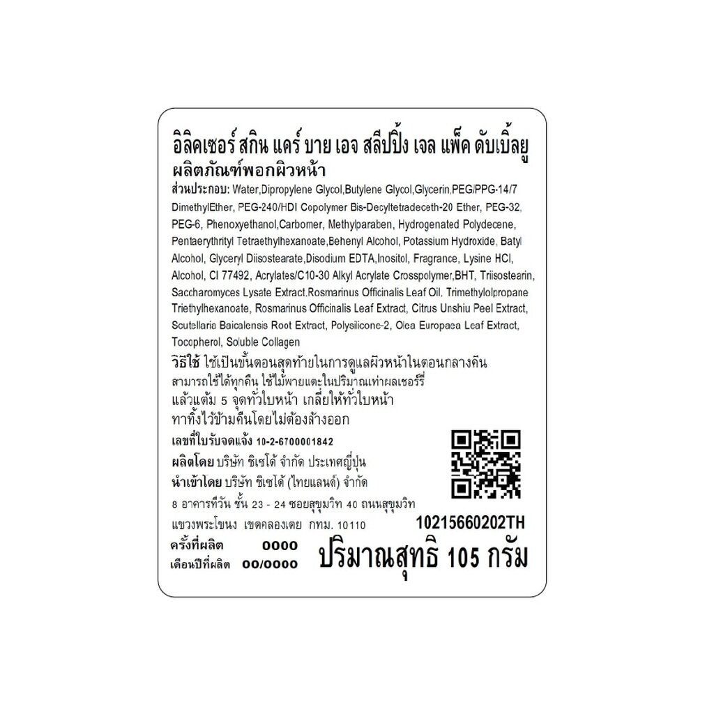 Elixir อิลิคเซอร์ สกิน แคร์ บาย เอจ สลีปปิ้ง เจล แพ็ค ดับเบิ้ลยู 105 กรัม