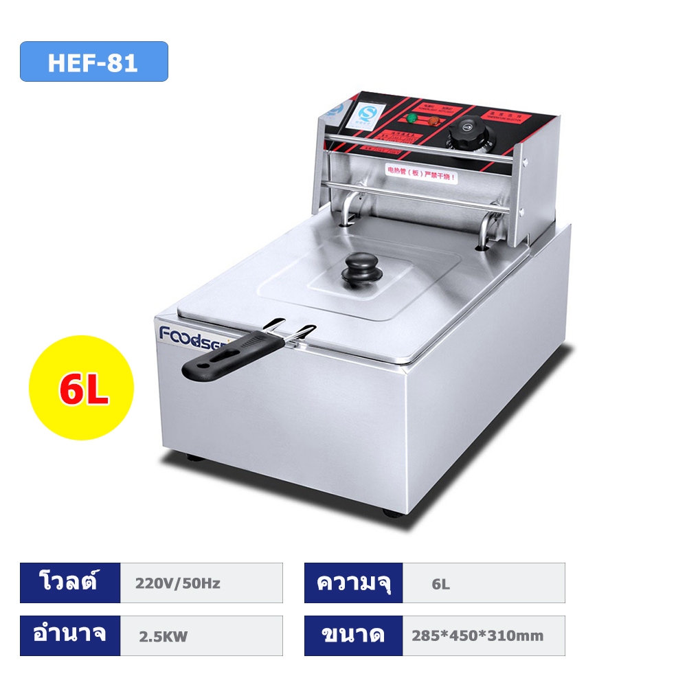 HEF-81 เตาทอดไฟฟ้า หม้อทอด ขนาด 6 ลิตร หม้อทอดเพื่อการพาณิชย์ 6L