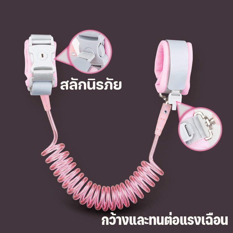 สายจูงเด็กป้องกันพลัดหลง ล็อคสแตนเลส304 หัวโลหะกันตัดหนาพิเศษ ความยาว2.5เมตร สีชมพู สีฟ้า