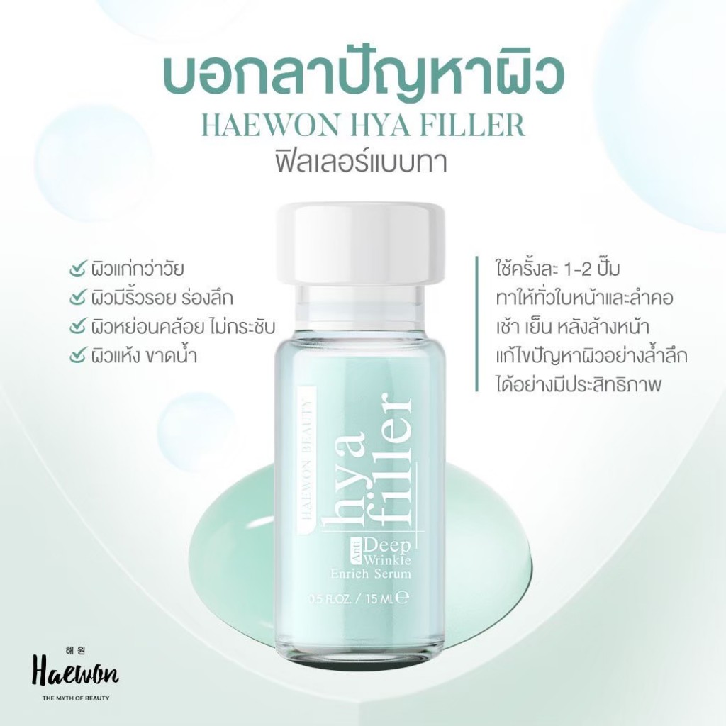 [ 2ขวด ] HAEWON Hyaluron Filler (15ml) แฮวอน ฟิลเลอร์แบบทา ลดริ้วรอย กระชับเต่งตึง เซรั่มไฮยา