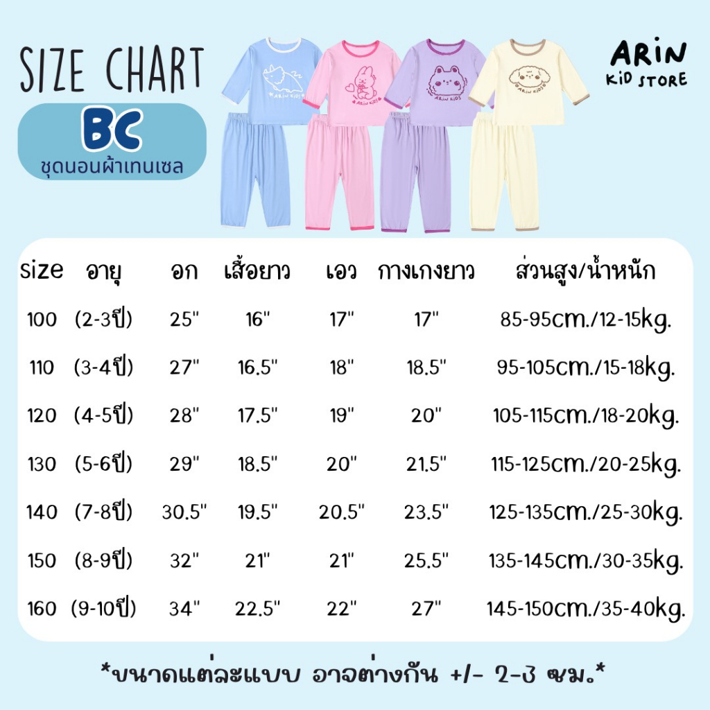 ชุดนอนเด็ก ผ้าเซ็นเทล รุ่นBC ของแบรนด์Arin Kids อริน คิดส์