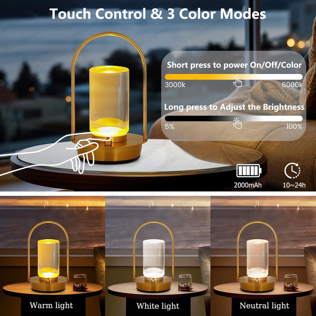 โคมไฟตั้งโต๊ะไร้สาย LED ชาร์จ Touch Desktop Night Light สําหรับร้านอาหารตกแต่งห้องนอน Light