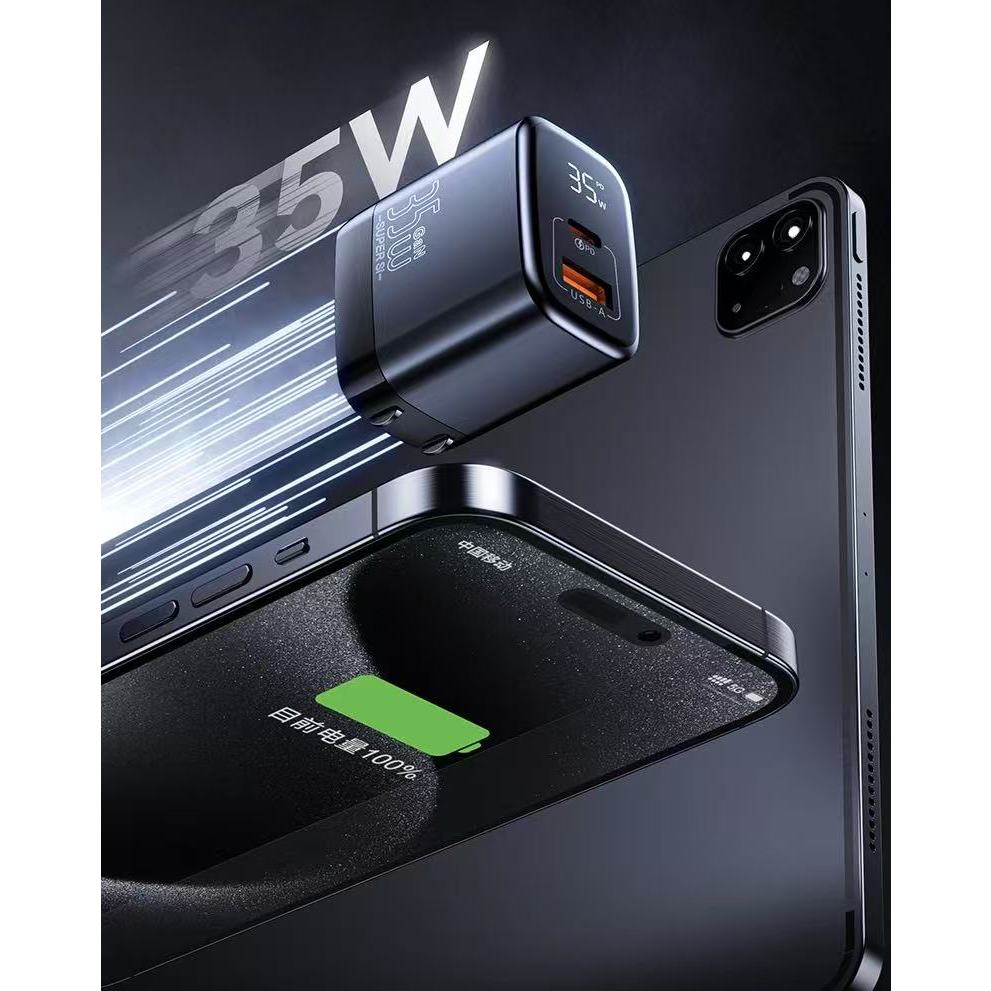 35W GaN อะแดปเตอร์ชาร์จโทรศัพท์มือถือ Super Fast Charging พร้อม LED Digital Display USB + Type C