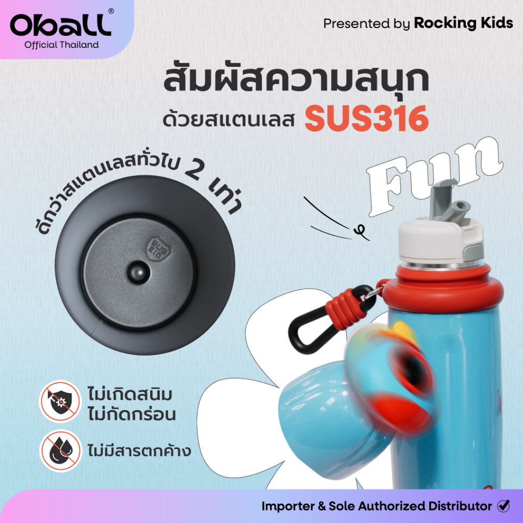 Oball รุ่น Duo Duo fun แก้วน้ำเก็บอุณหภูมิ เก็บความเย็นนาน 24 ชม. ความจุ 420 มล.