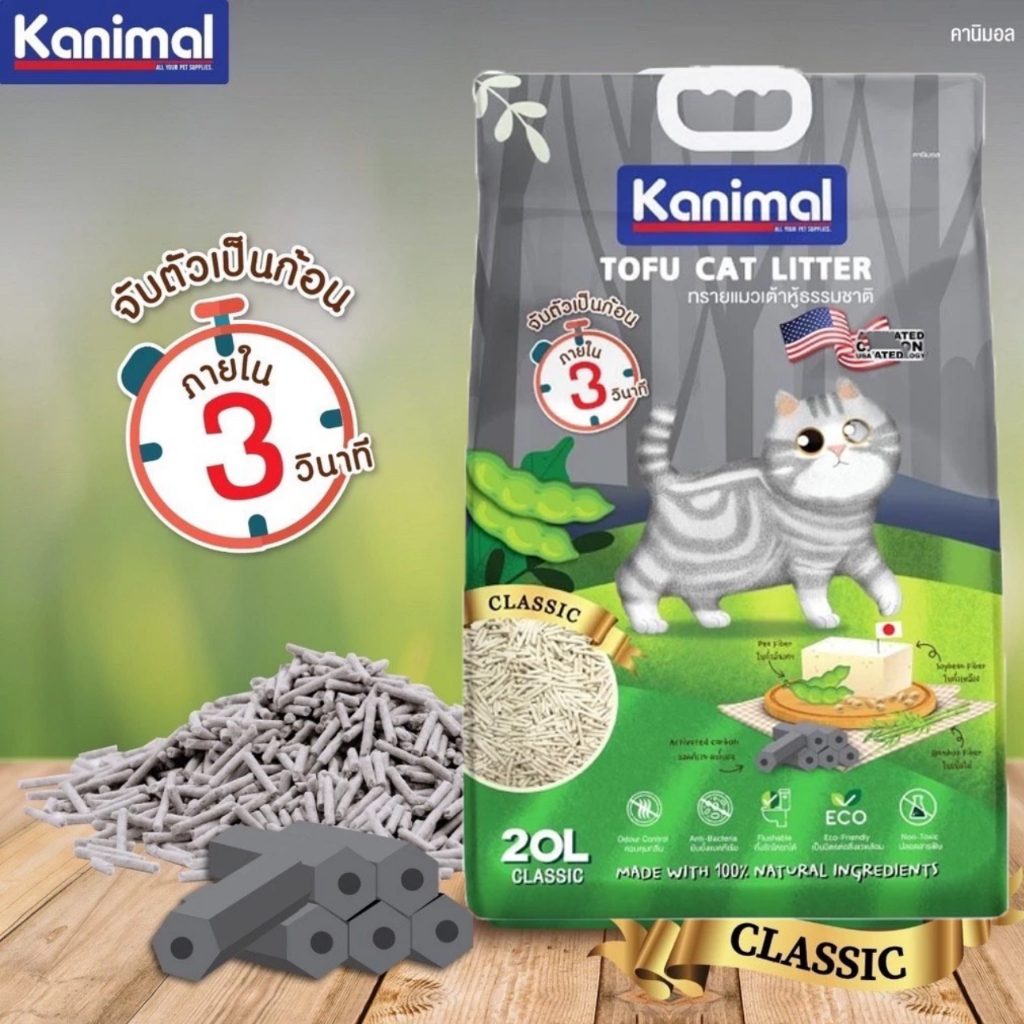 [20ลิตร] Kanimal 20L ทรายแมวเต้าหู้ ธรรมชาติ ทิ้งชักโครกได้ ขนาด 20 ลิตร