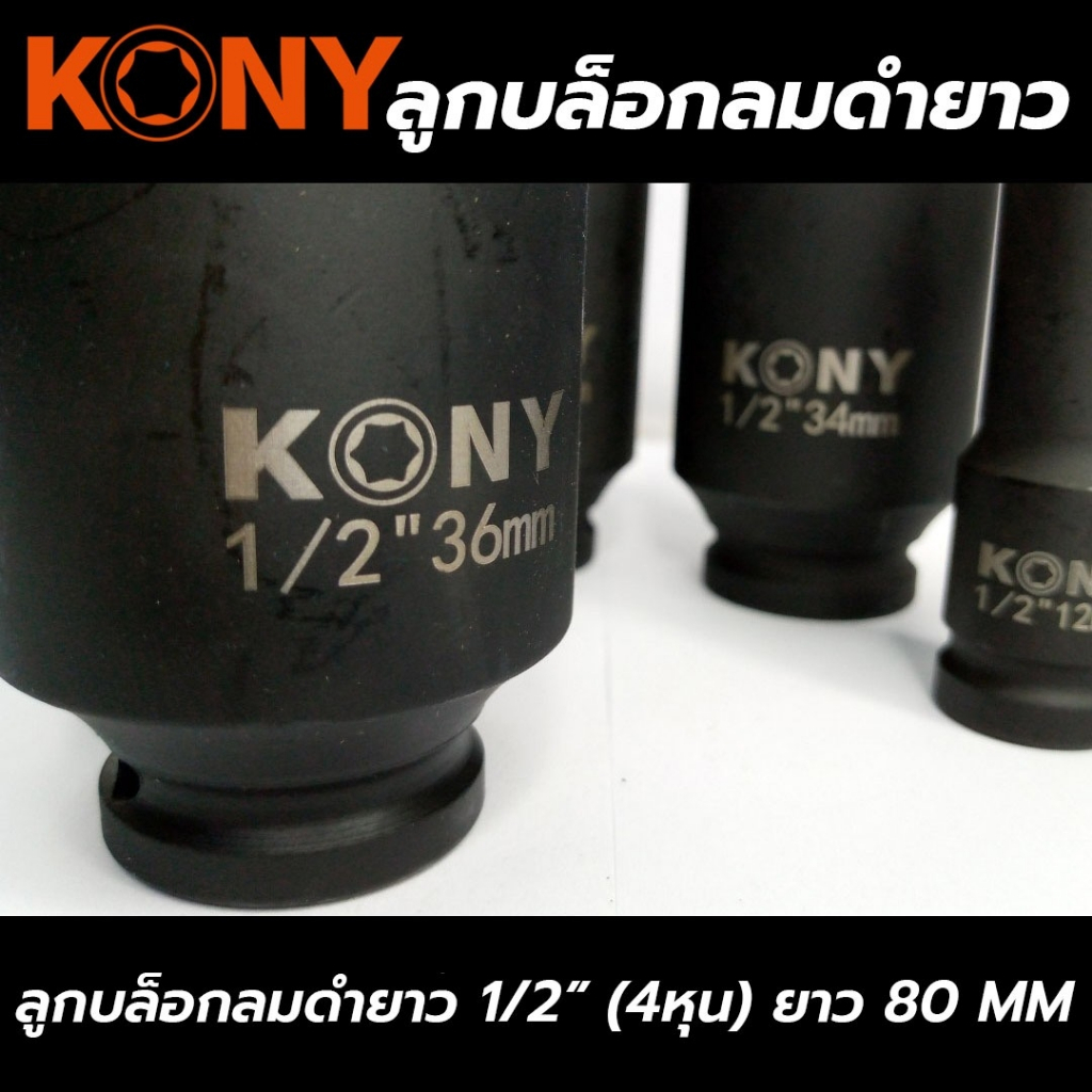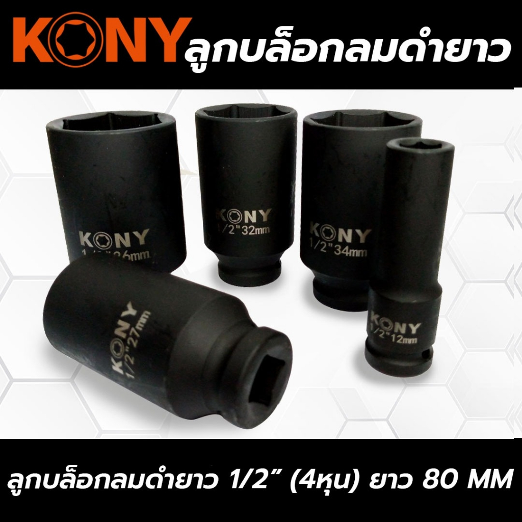 KONY ลูกบล็อกลมดำ 6 เหลี่ยม มีขนาด 8-46MM ยาว 80MM 1/2" (4หุน) (ขายแยกเบอร์) No.KN-B03