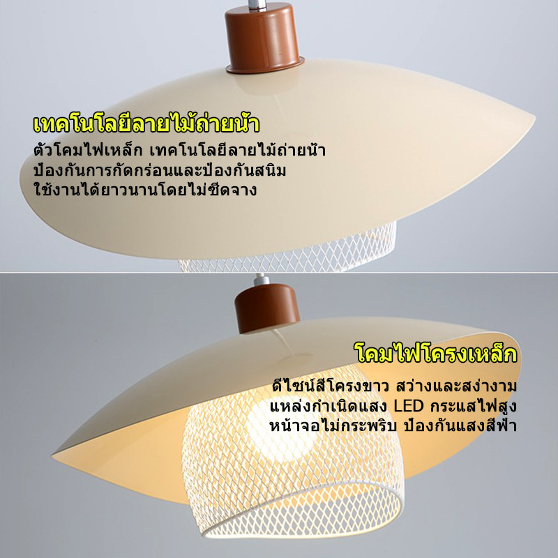 【จัดส่งในพื้นที่】SNRIGIN โคมไฟแขวน LED มินิมอล ห้องอาหาร ปรับระดับ สูง1.8ม ลายไม้ พร้อมหลอด E27