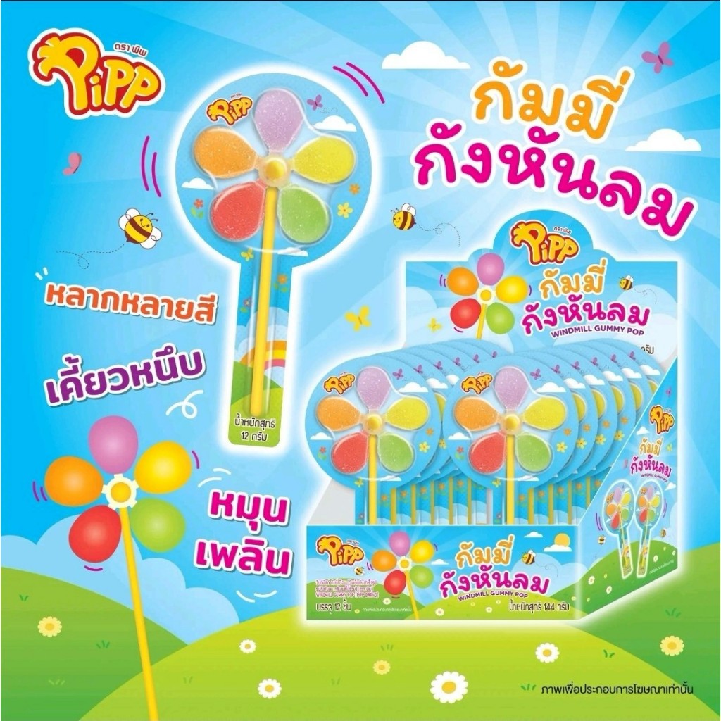 Pipp Windmill Gummy Pop พิพ วินด์มิลล์กัม มี่ป๊อบ รสผลไม้รวม 12 ก. x 12 ชิ้น