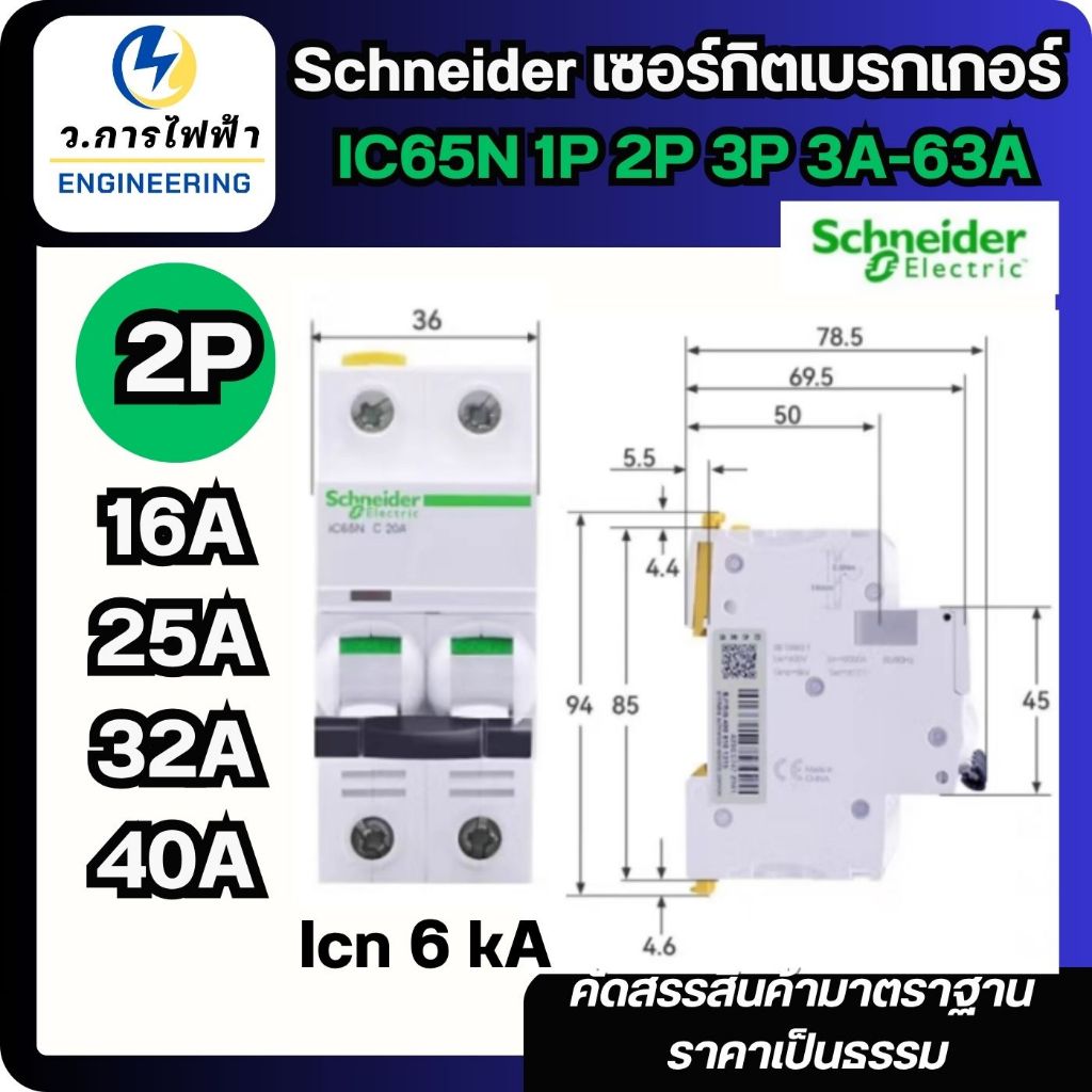 เบรกเกอร์ Schneider IC65N C1P 2P 3P 6kA เกาะราง ตัวเลือก 3A 6A 10A 16A 20A 32A 40A 50A MCB เบรกเกอร์เกาะราง C type