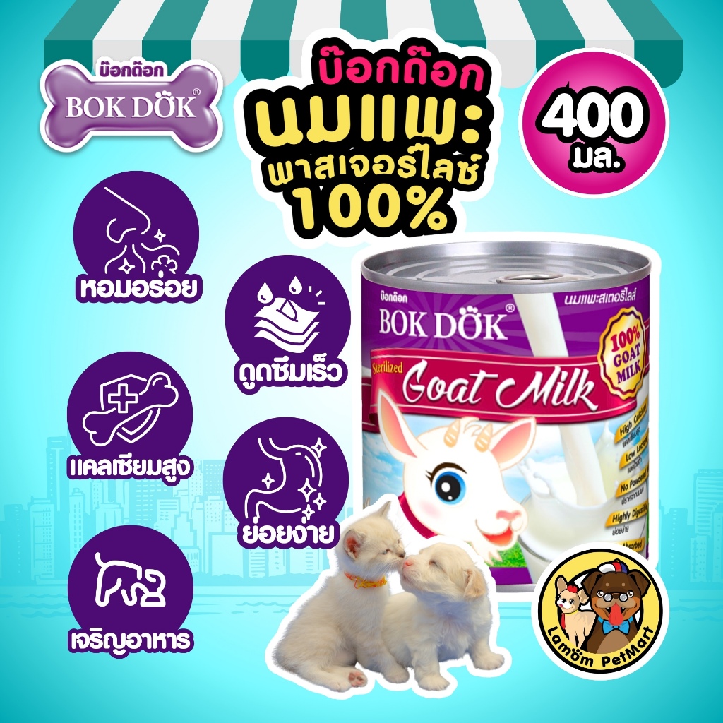 (ปลีก) นมแพะ 100% พาสเจอร์ไลซ์ BOKDOK แบบกระป๋อง อร่อย ย่อยง่าย ไม่มีนมผง สำหรับน้องหมาน้องแมว ML02