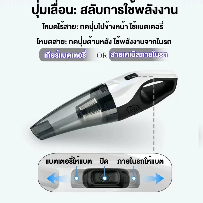 NC-XIOAM เครื่องดูดฝุ่นในรถ 99900Pa ใช้ได้ทั้งแห้งและเปียก ระบบจ่ายไฟสองทาง (สายจ่ายไฟในรถ + แบตเตอรี่ 2in1)