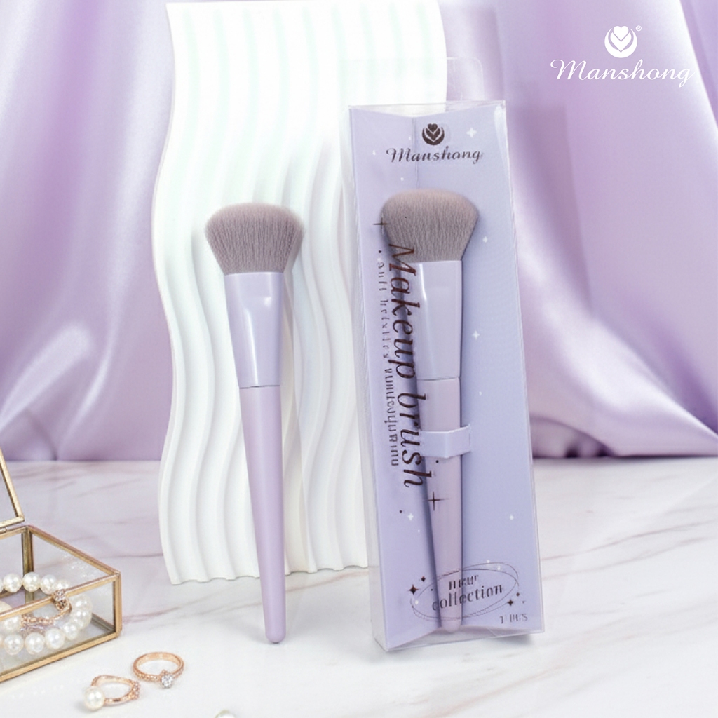 NEW แปรงแต่งหน้า ขนแปรงนุ่มพิเศษ แบบพรีเมี่ยม สีม่วงละมุน by Manshong