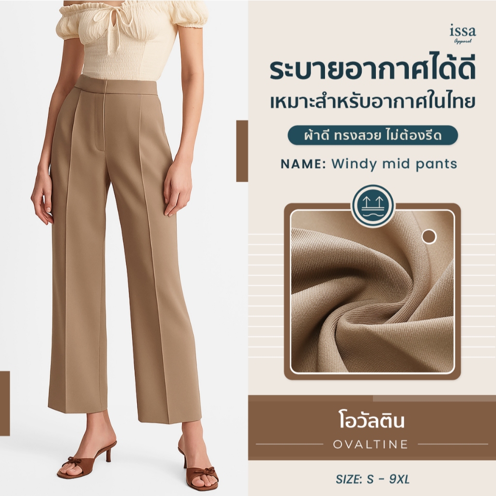Windy mid กางเกงขากระบอกกลาง มีจีบหน้า 1 จีบ ผ้าไอวี่ ทรงสวย ไม่ต้องรีด กางเกงใส่ทำงาน กางเกงผู้หญิง กางเกงทำงาน