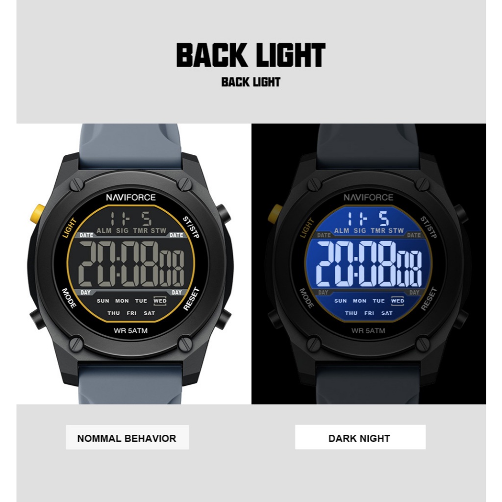 NAVIFORCE 7134 นาฬิกาดิจิตอลมัลติฟังก์ชั่น 5ATM กันน้ํา LED Backlight นาฬิกาสปอร์ต