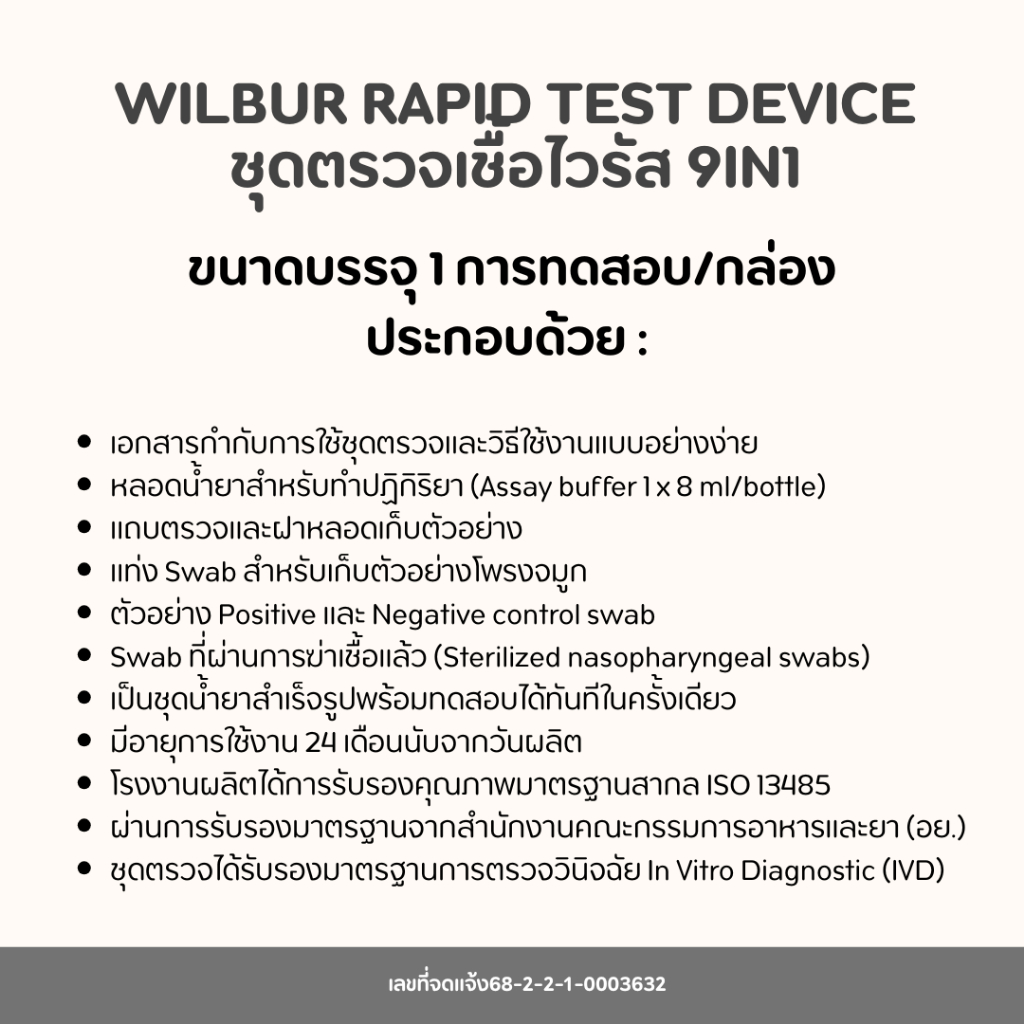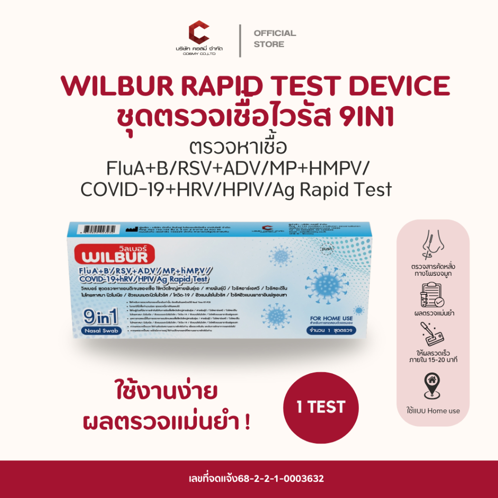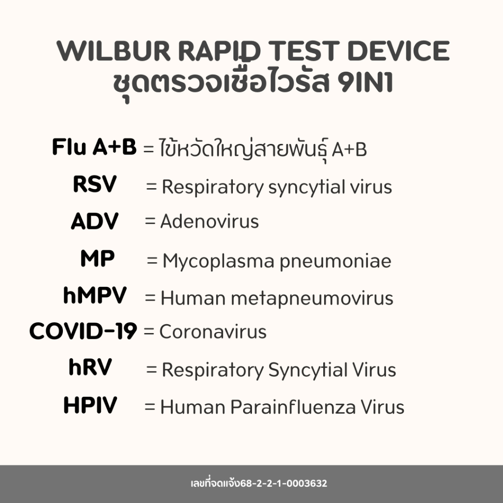 Wilbur 9 in 1 ตรวจหาเชื้อ 9 สายพันธุ์Covid-19 ไข้หวัดใหญ่ A+B hMPV RSV+ADV HPIV ไมโครพาสม่า FOR HOME USE