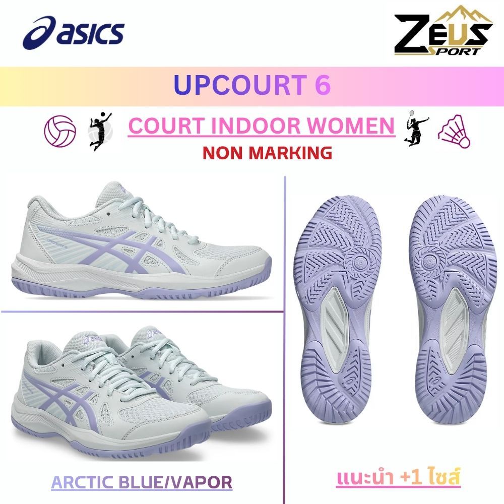 ASICS UPCOURT 6 รองเท้าแบดมินตัน วอลเลย์บอล [ฺCOURT INDOOR WOMEN] Non Marking สามารถเข้าได้ทุกสนาม แนะนำ +1 ไซส์