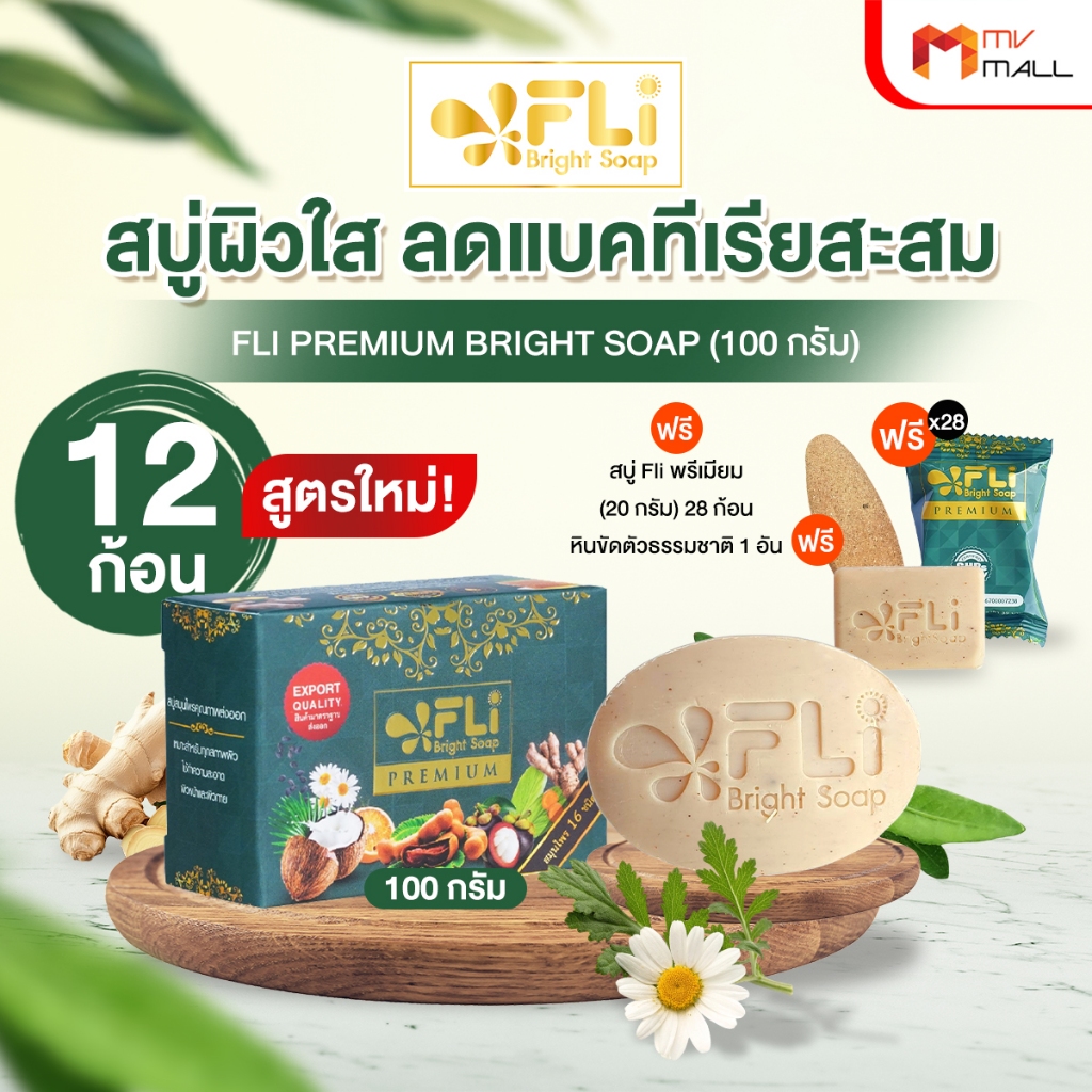 [พร้อมส่ง] สบู่ FLi Premium Bright soap สูตรใหม่ สบู่สมุนไพรไทย 16 ชนิด 100g.เซต 12 ก้อนพร้อมของแถม