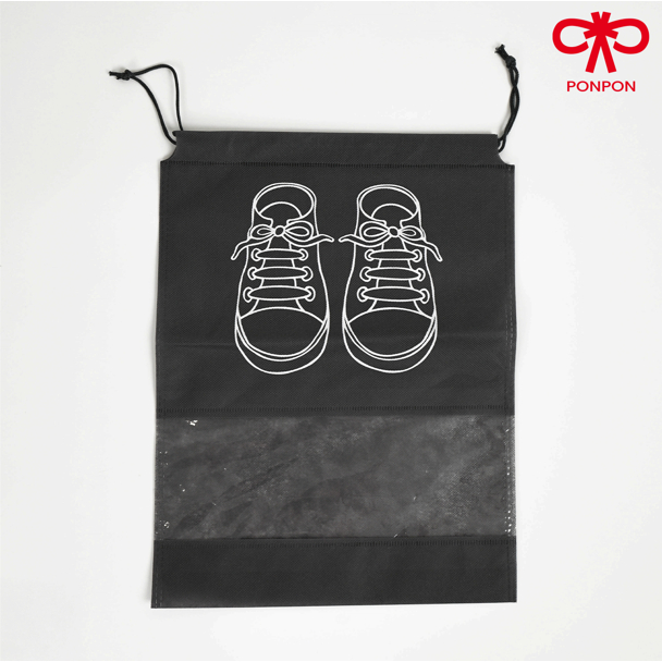PONPON ถุงเก็บรองเท้าเดินทาง กันน้ำ กันฝุ่น มีหน้าต่างใส (พร้อมเชือกรูด) ใช้ซ้ำได้