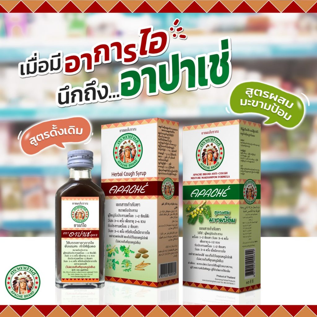Apache ยาแก้ไอ อาปาเช่ ขับเสมหะ ชุ่มคอ สูตรดั้งเดิม / สูตรผสมมะขามป้อม ขนาด 60 มล. (1-5 ขวด)