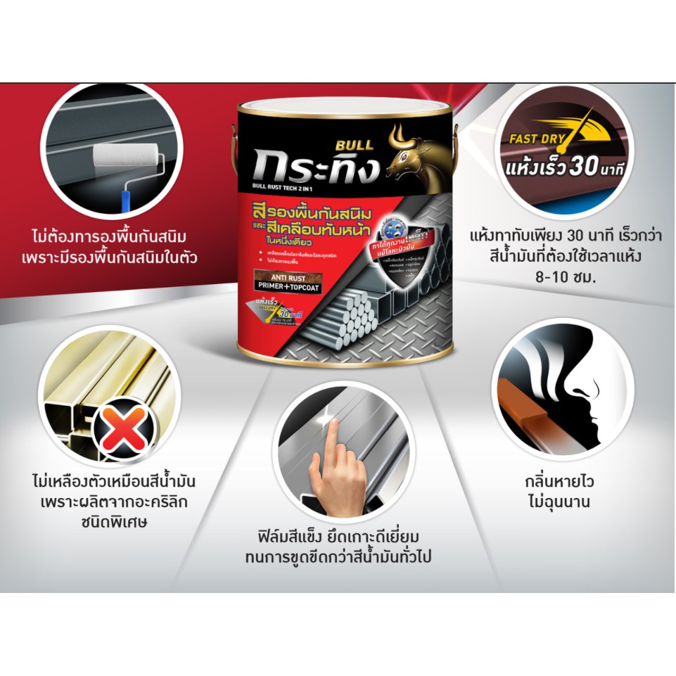 สีรองพื้นและทับหน้า Beger กระทิง รัสท์เทค 2:1 สีน้ำมันผสมรองพื้น KM ชนิดด้าน (ขนาด 3L) ทาเหล็ก ทากัลวาไนซ์ โลหะผิวมัน
