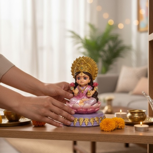 พระแม่ลักษมี ปางประทานพร ประทับดอกบัว ฐานสีม่วง **ทำพิธีเรียบร้อย** ขอพร ความรัก เงินทอง ธุรกิจ